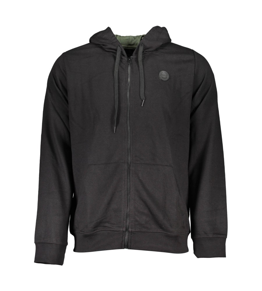 megztinis ilgomis rankovėmis su gobtuvu, šlifuotas, 2 centrinės kišenės, užtrauktukas, aplikacija, logotipas