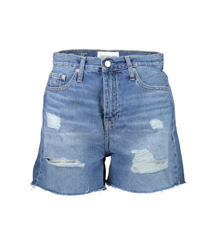 džinsiniai šortai, 5 kišenės, dėvėtas efektas, siuvinėjimas, kontrastingos detalės, logotipas
