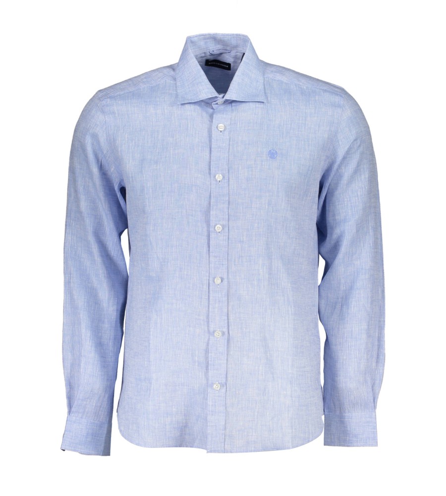 marškiniai ilgomis rankovėmis, įprastos formos, itališka apykaklė, rankogaliai su 1 mygtuku, sagos, siuvinėjimas, logotipas, organiniai pluoštai