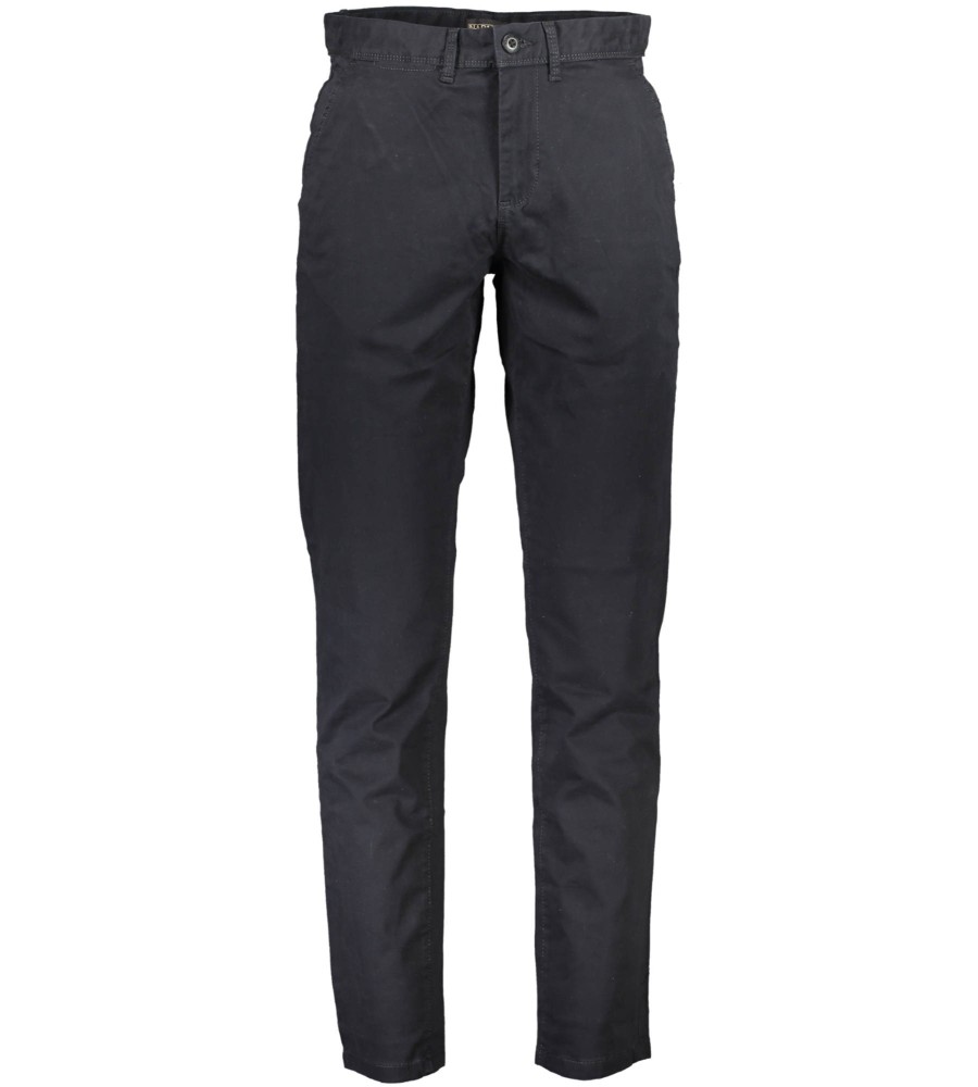 Keturių kišenių kelnės, užtrauktukas ir sagos, logotipas