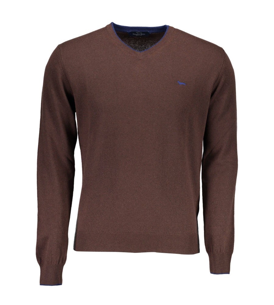 Megztinis ILGOMIS RANKOVĖMIS, "V" kaklo, KONTRASTINĖS APDAILOS, logotipas