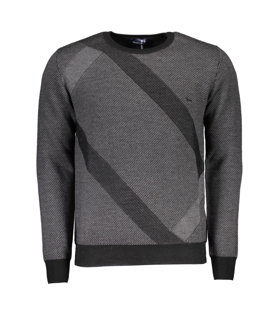 megztinis ilgomis rankovėmis, apvalus kaklas, kontrastingos detalės, siuvinėjimas, logotipas