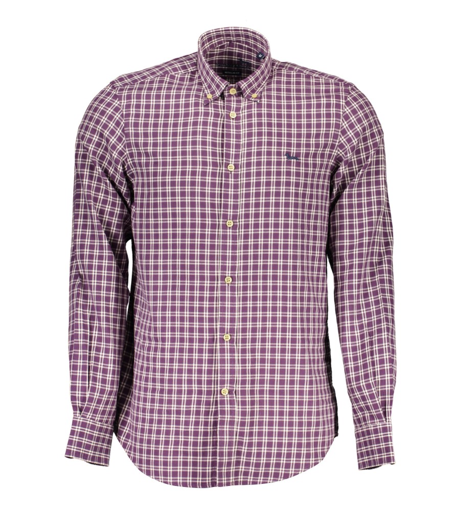 įprasti marškiniai, ilgomis rankovėmis, užsegama apykaklė, 1 sagos rankogaliai, kontrastingi rankogaliai viduje, sagos, logotipas