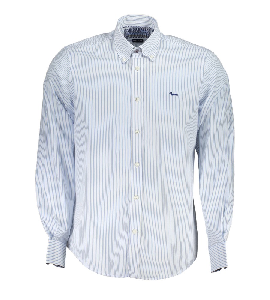 įprasti marškiniai, ilgomis rankovėmis, užsegama apykaklė, 1 sagos rankogaliai, kontrastingi vidiniai rankogaliai, sagos, logotipas, ekologiška medvilnė