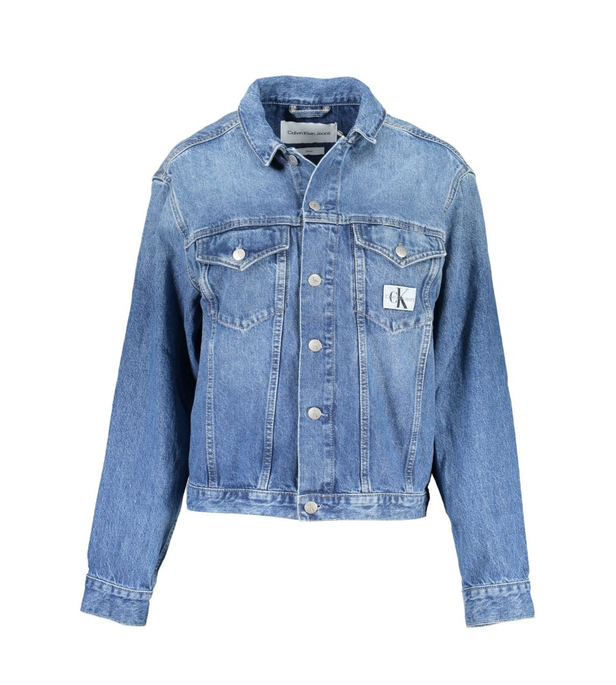 džinsinis švarkas, 2 kišenės krūtinėje, sagos, išplautas efektas, aplikacija, logotipas, 20% perdirbta medvilnė