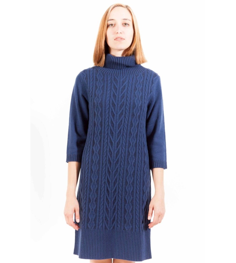 TRUMPA SUKNELĖ, 3/4 RANKOVĖMIS, AUKŠTU APAKLIU, SIŪVE KRYŽIU, LOGOTIPA